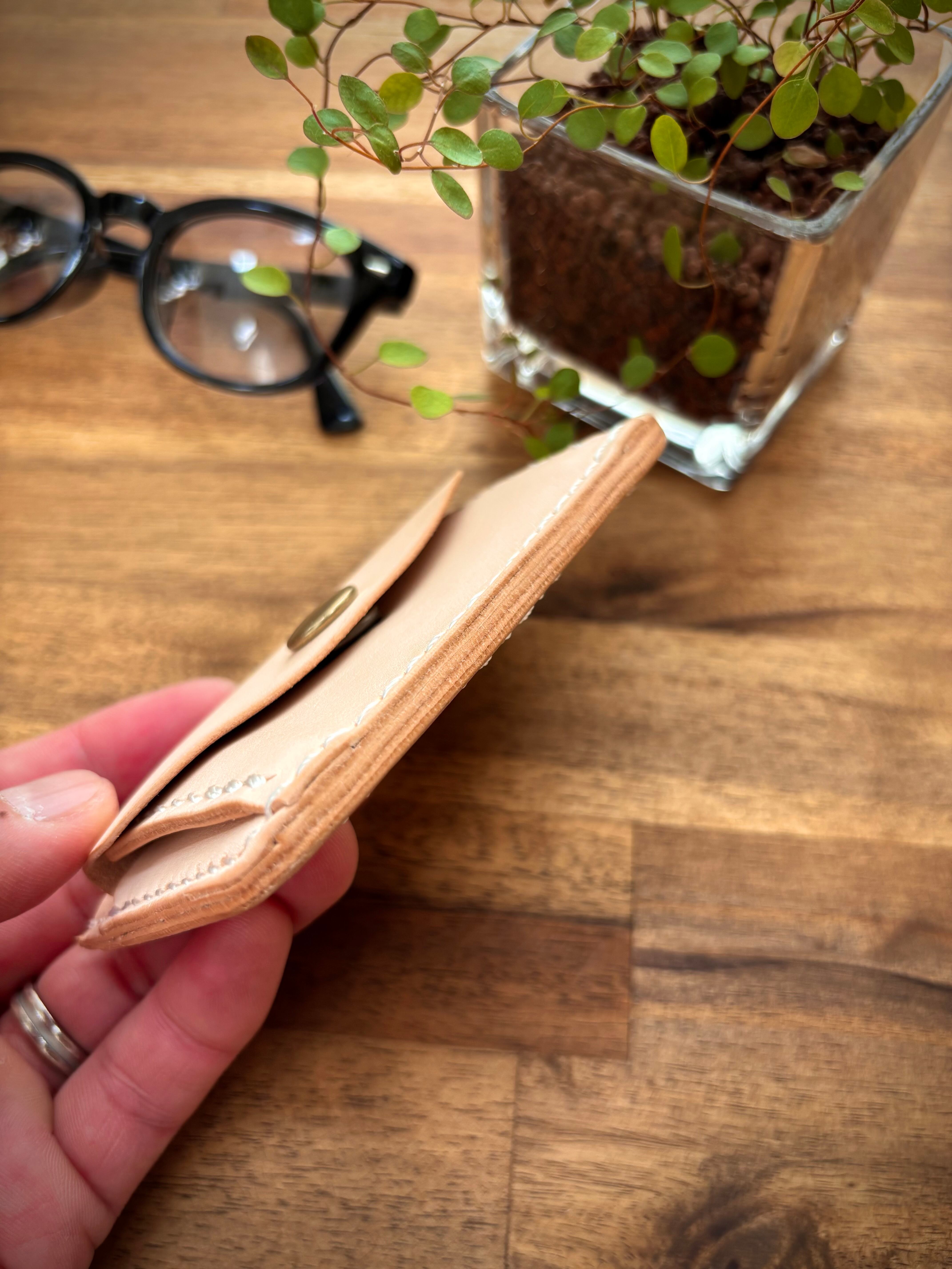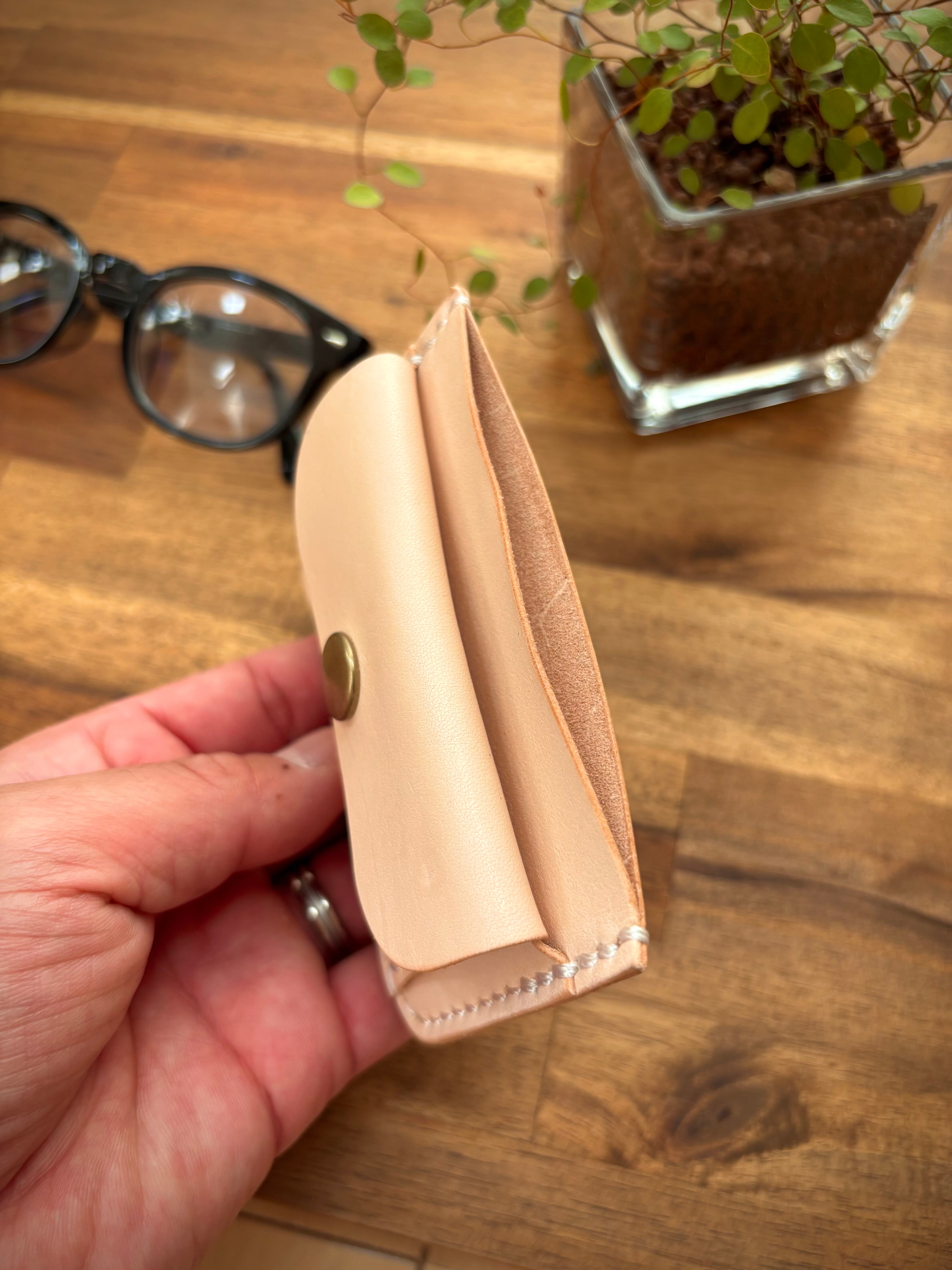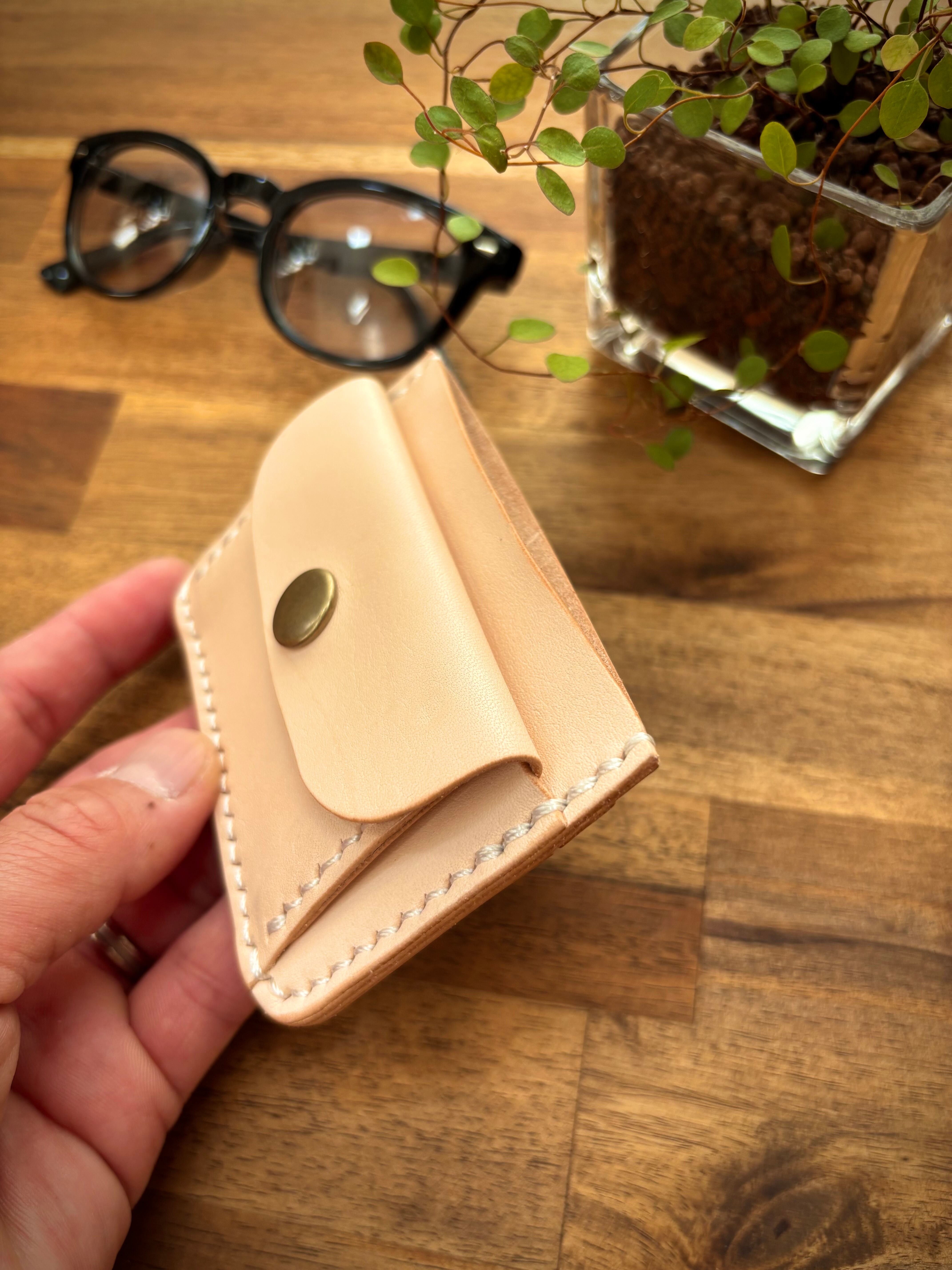 本革を使用していますので、使っているうちにアメ色になりツヤが出てきて色味が濃くなっていきます。育てる財布です。