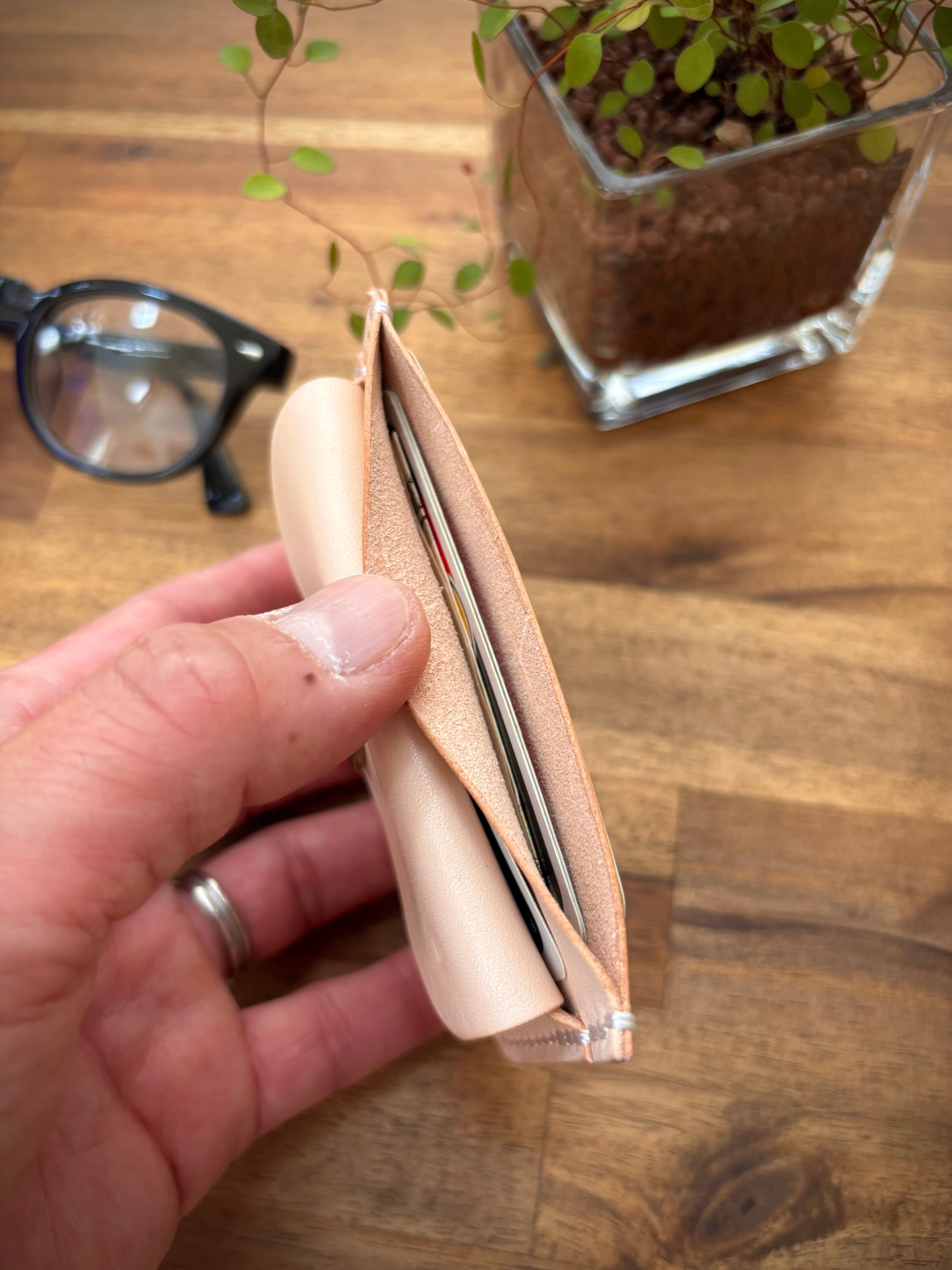 後に2段のカードポケット、センターにフリーポケットがあり、小銭入れの後にもポケットが付いています。小さく折ったお札をセンターに入れておけば、これ1つで十分です。