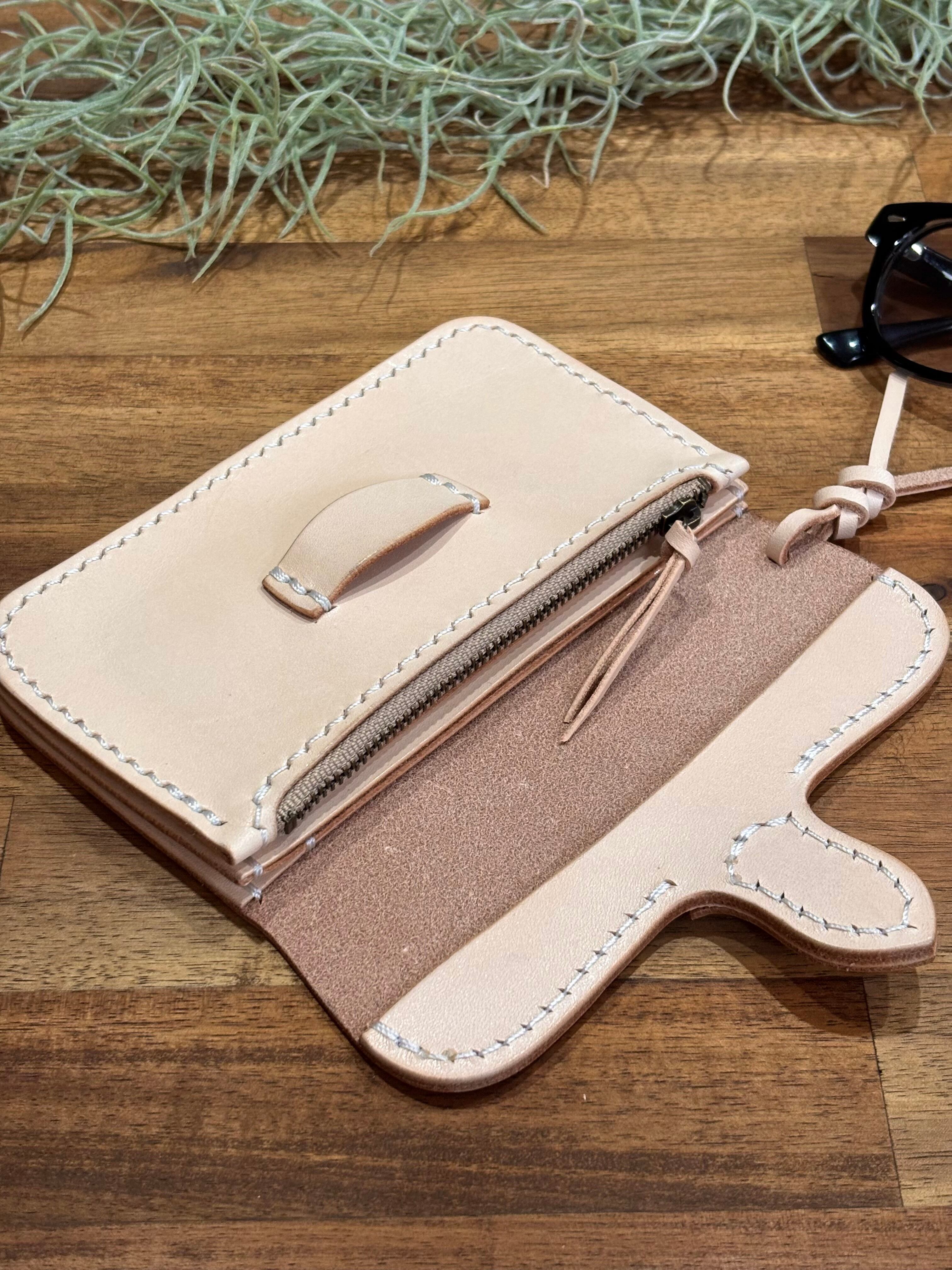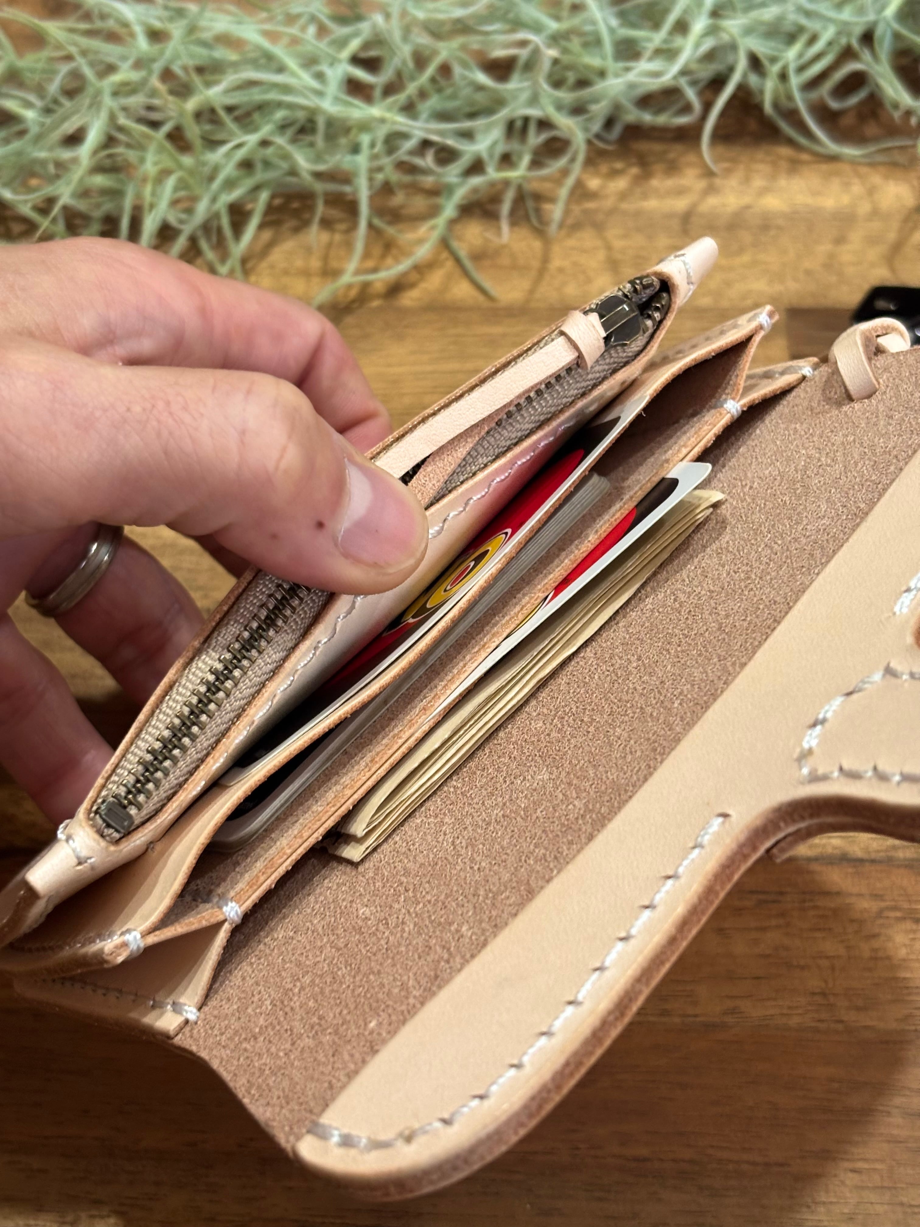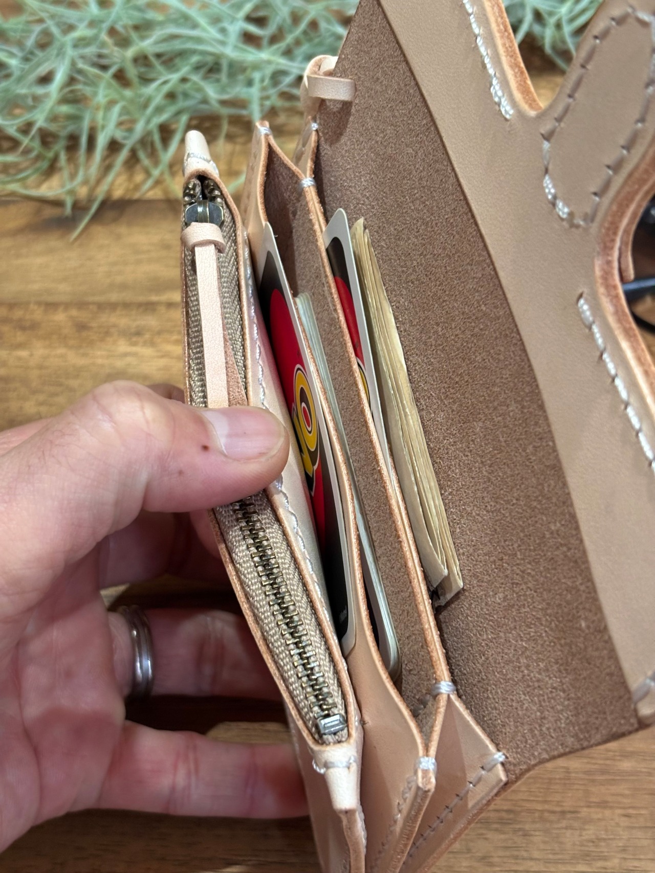本革で作った差し込みタイプのトラッカーウォレットで、インナーがスタンダードな3層式です。