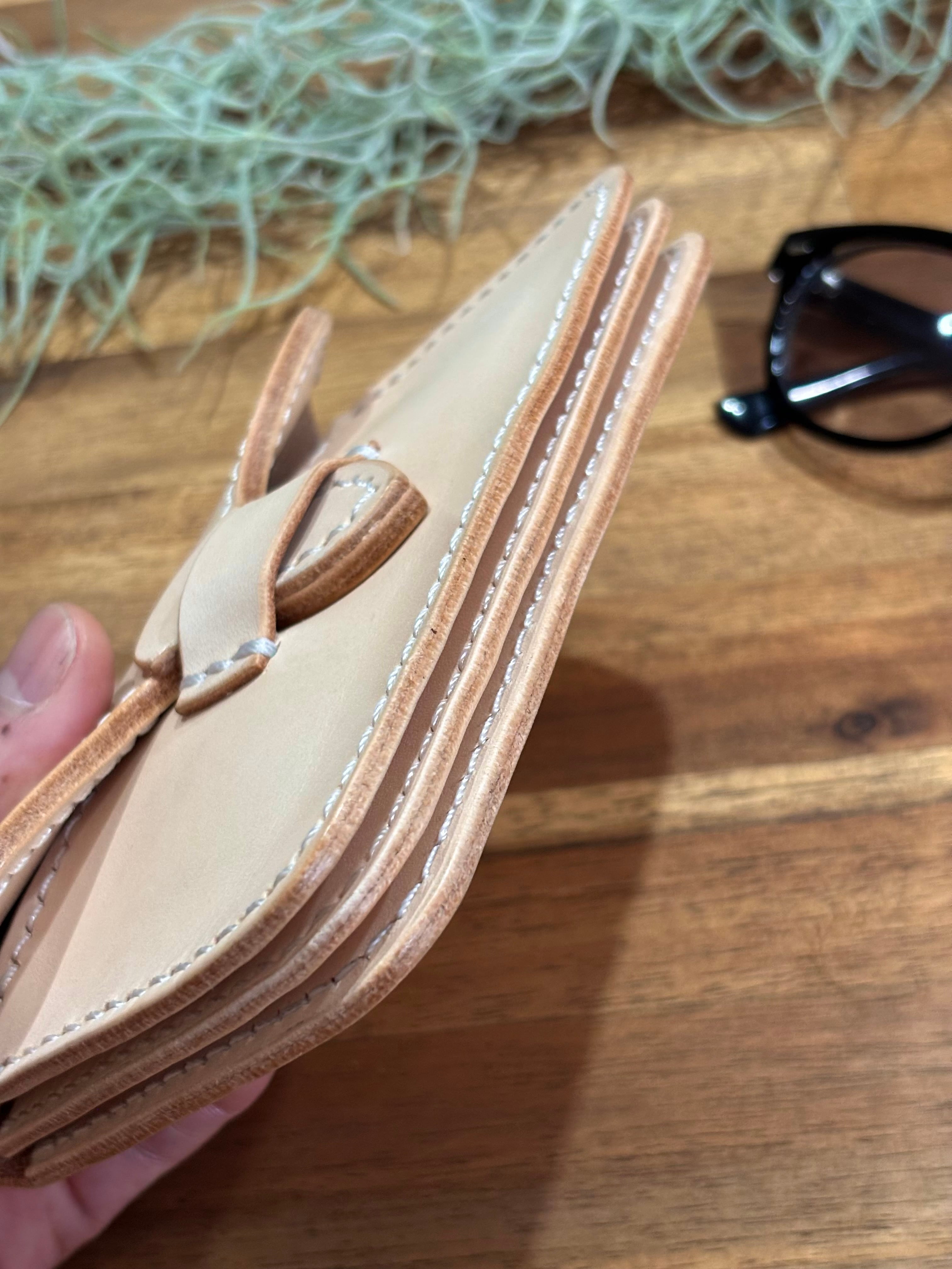 ジーンズのケツポケットに入れた時にカッコいいサイズで作りました。