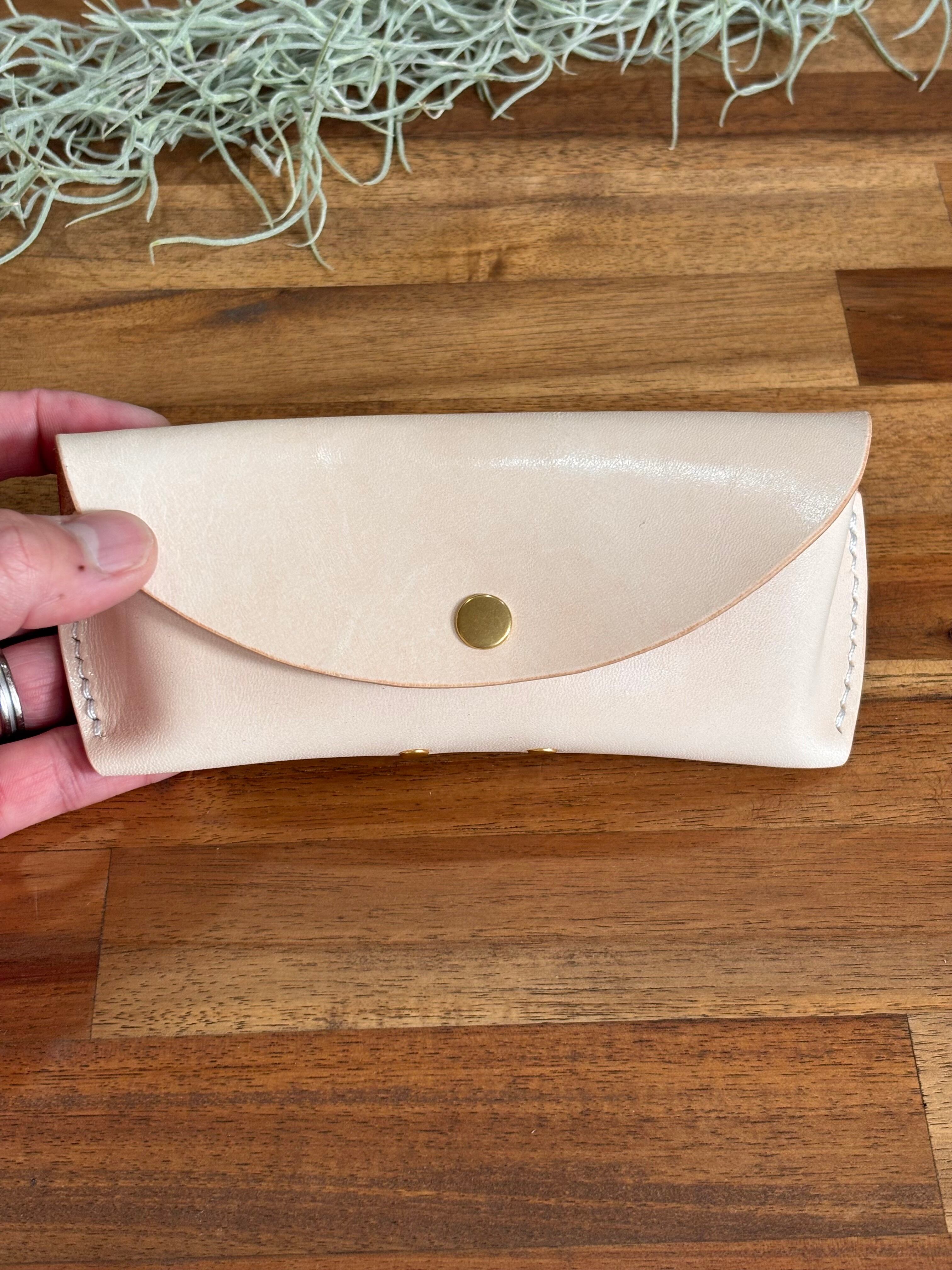本革の高級感は醸し出しつつ、そのシルエットからカジュアルさが感じられる可愛らしいメガネケースです。シンプルな作りですので、どんなバッグに入れておいてもサマになるのではないでしょうか。