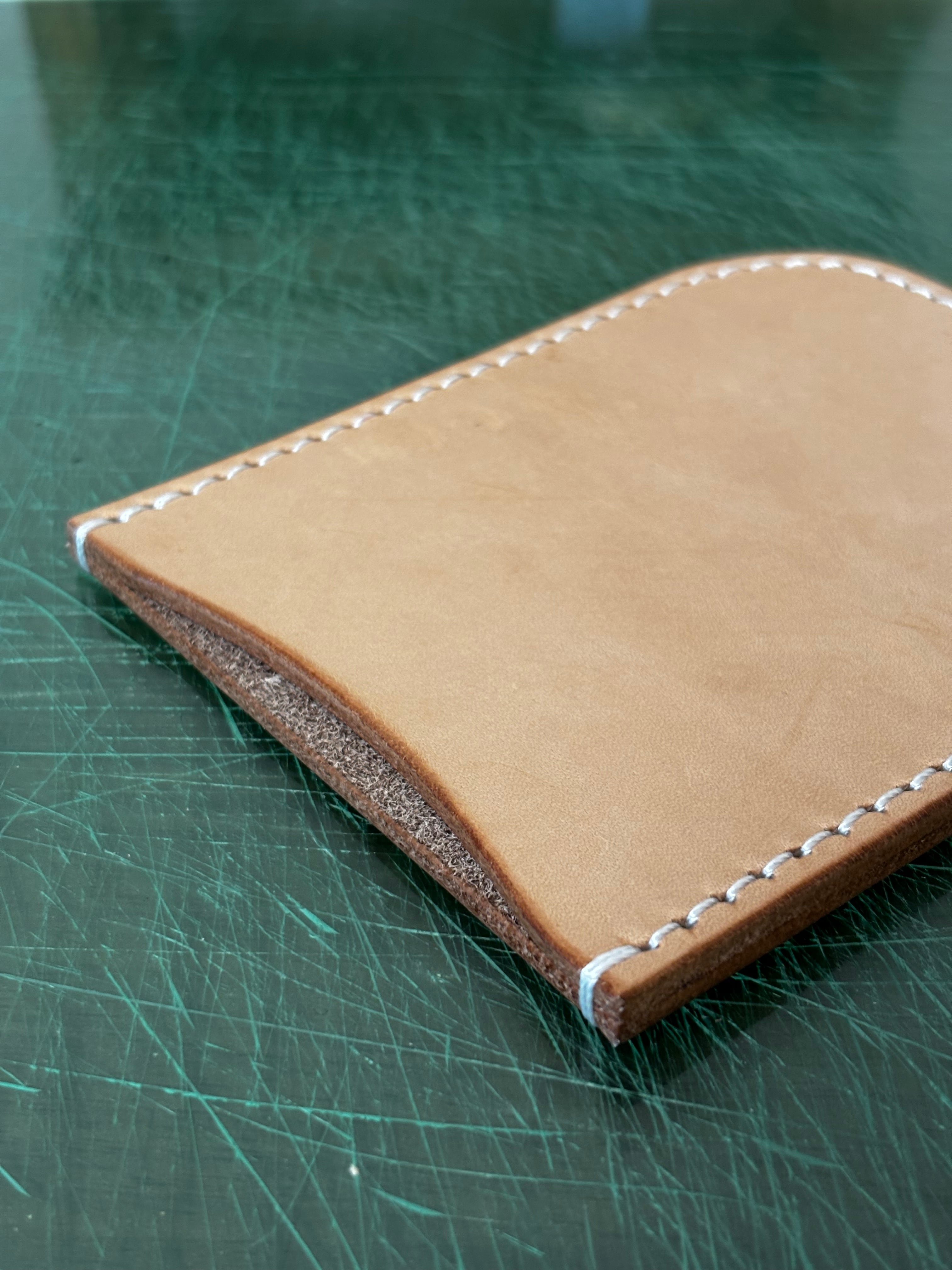使っている革の厚みは3ミリを貼り合わせており、財布としては6ミリの厚さ。