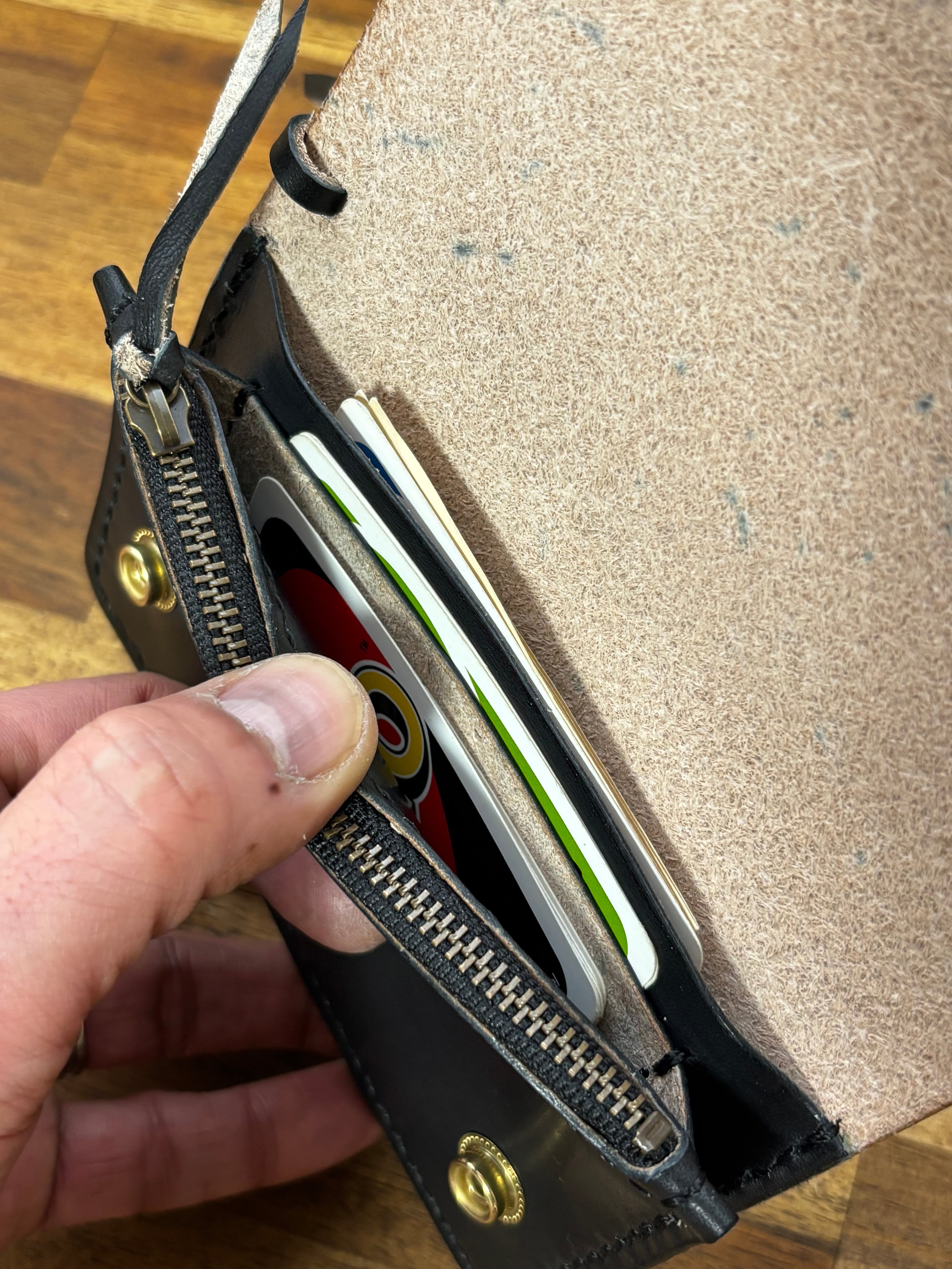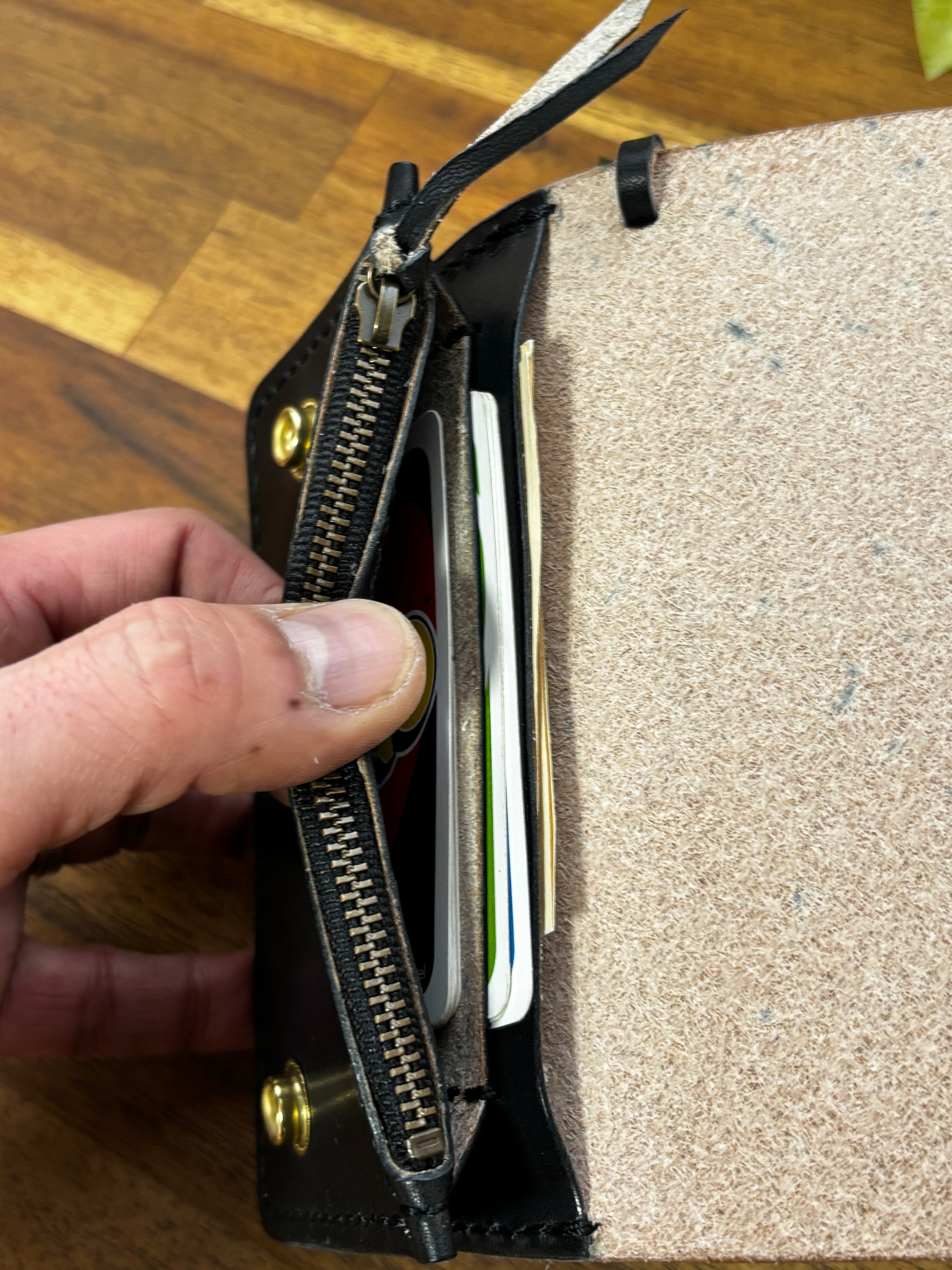 フリースペースが2箇所とカードポケットが1箇所、ファスナーのコインケース が1箇所となっています。