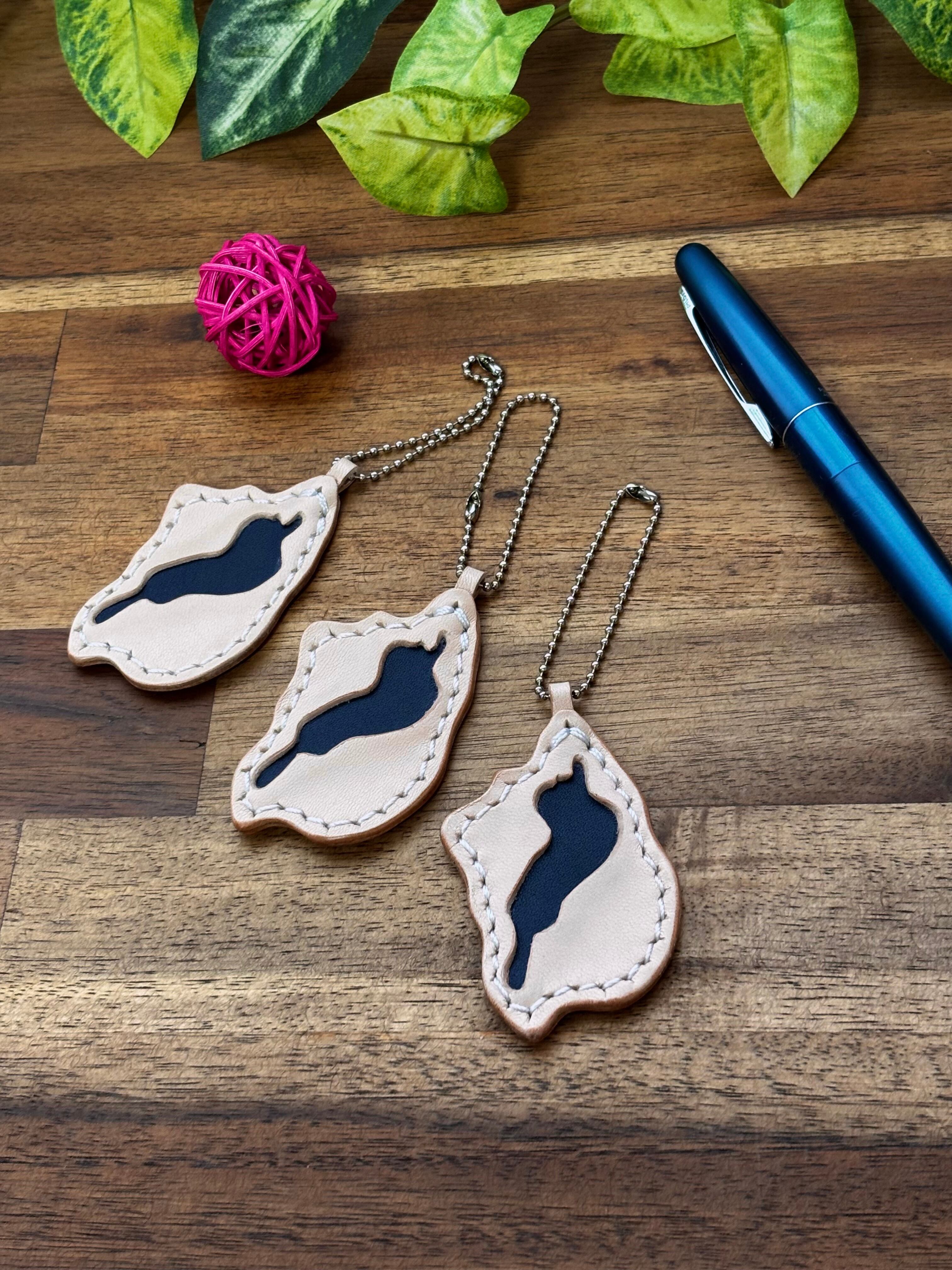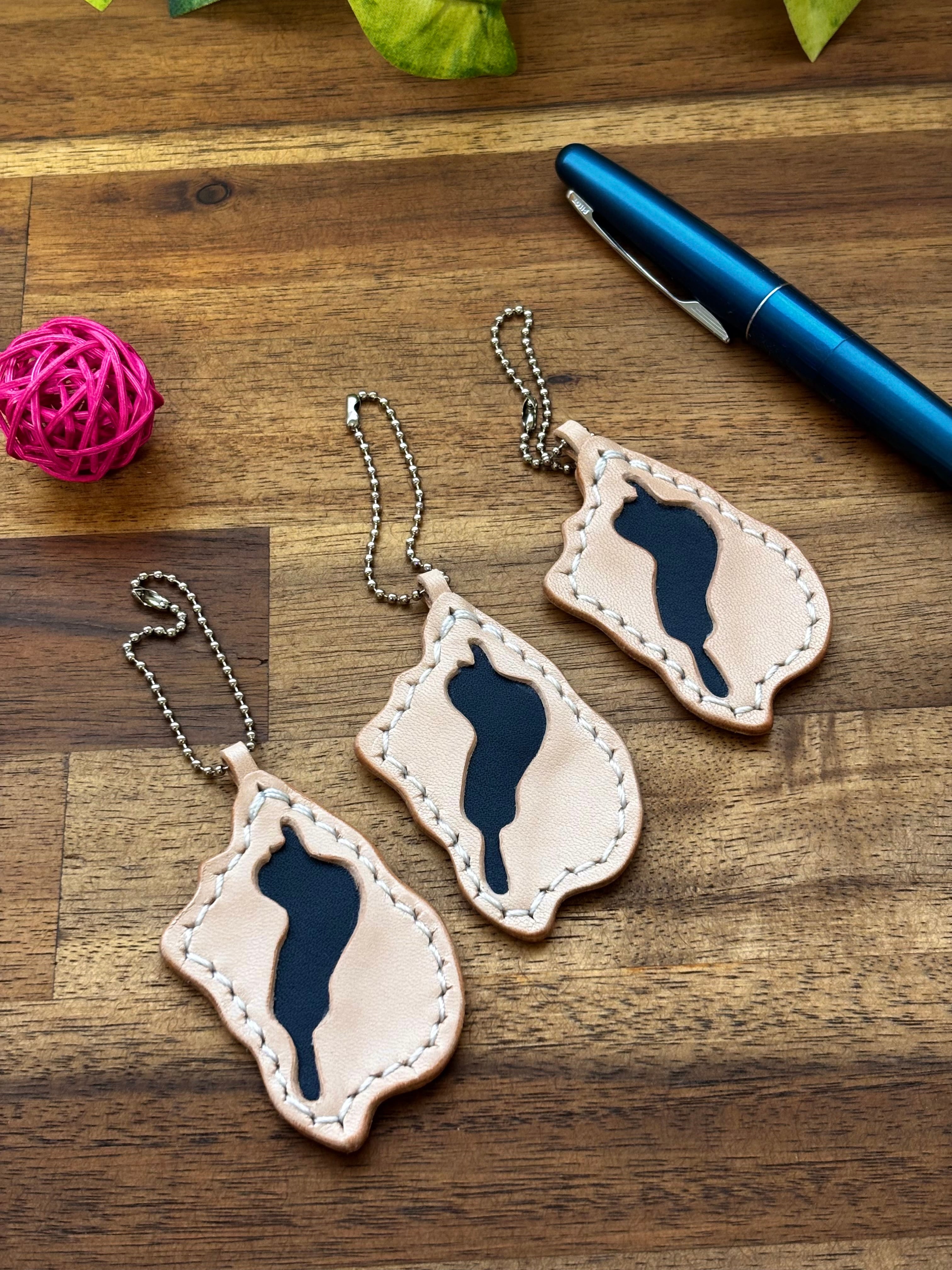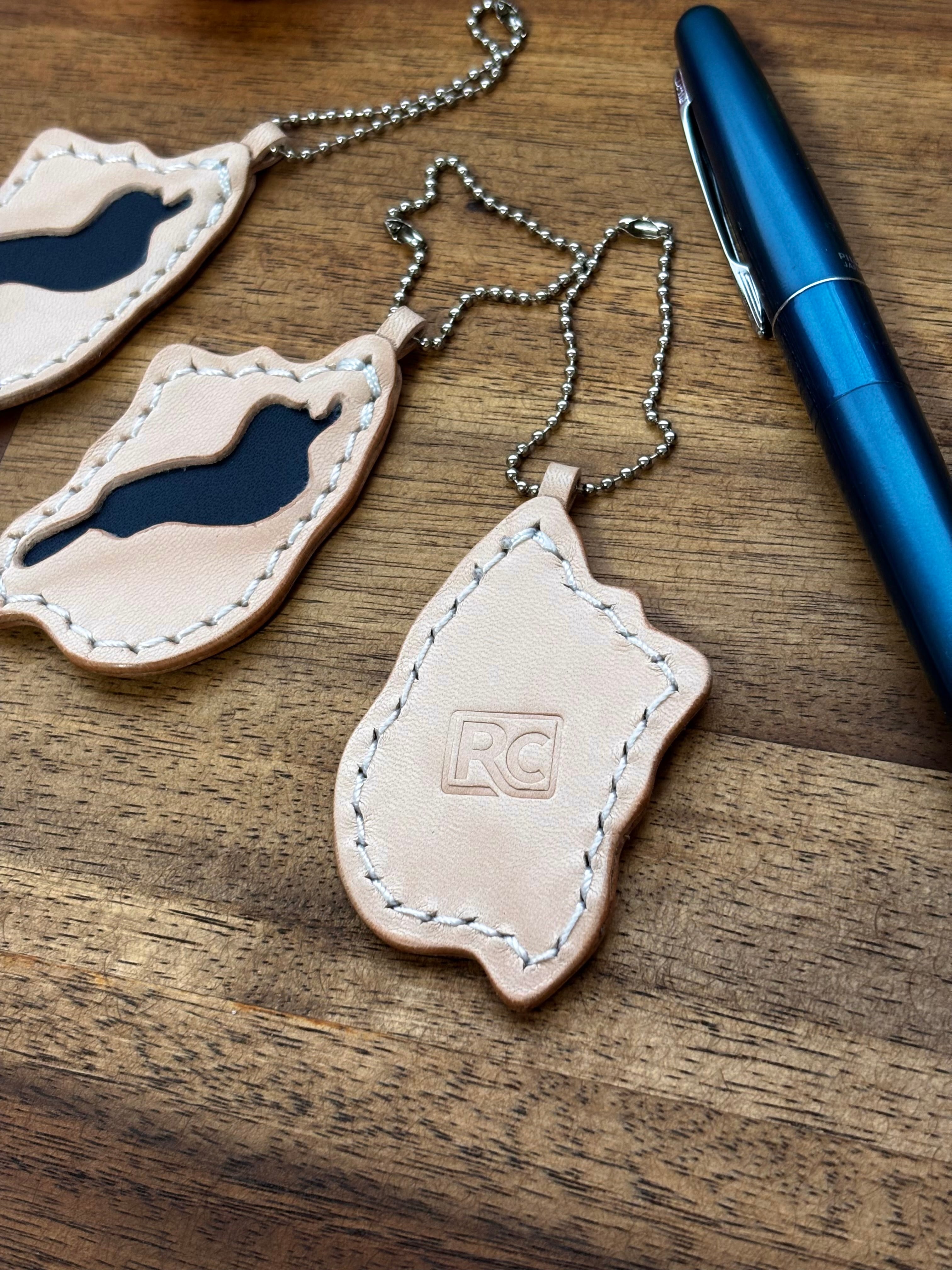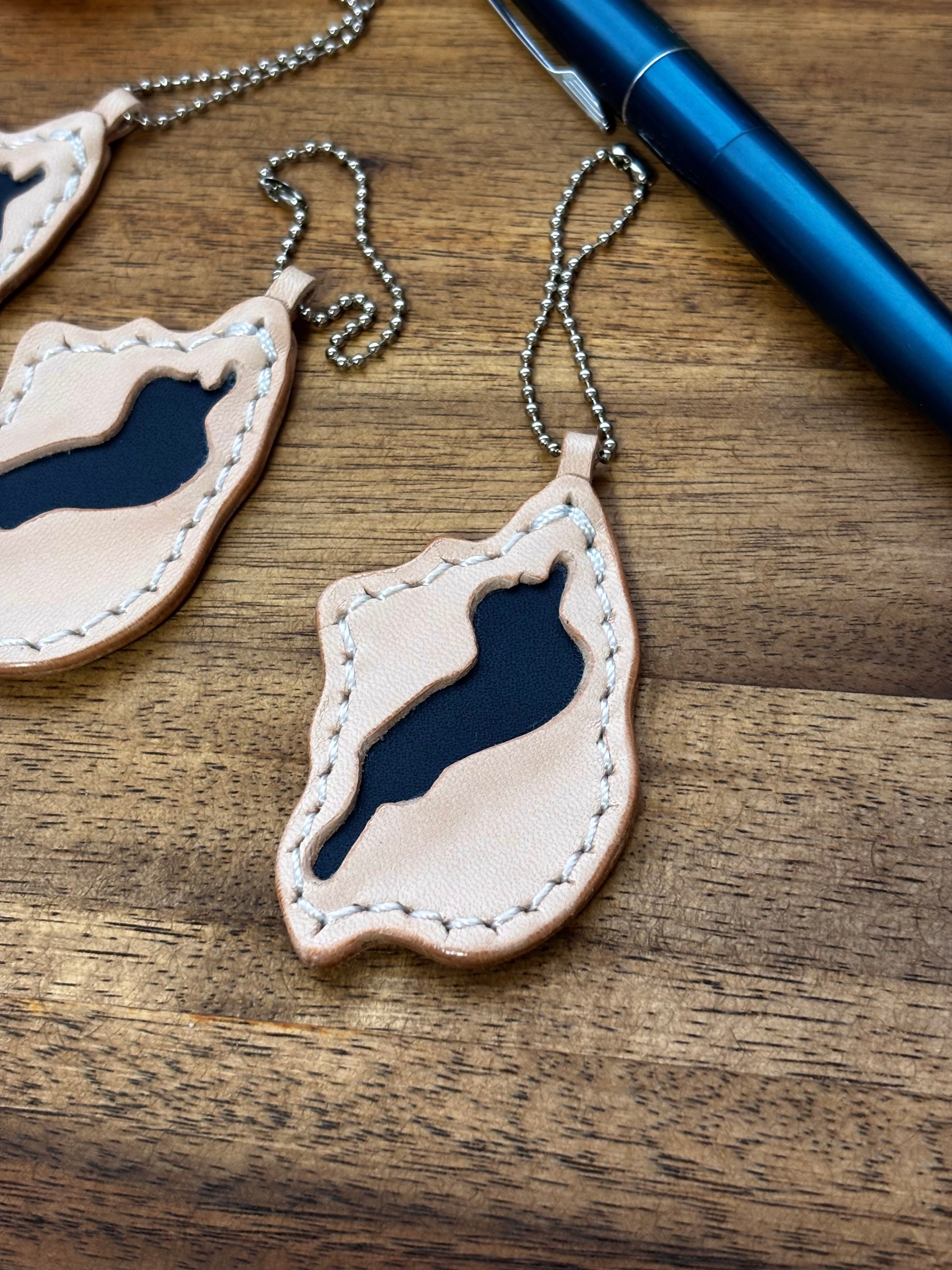 本革で作った滋賀・琵琶湖キーホルダーです。
