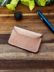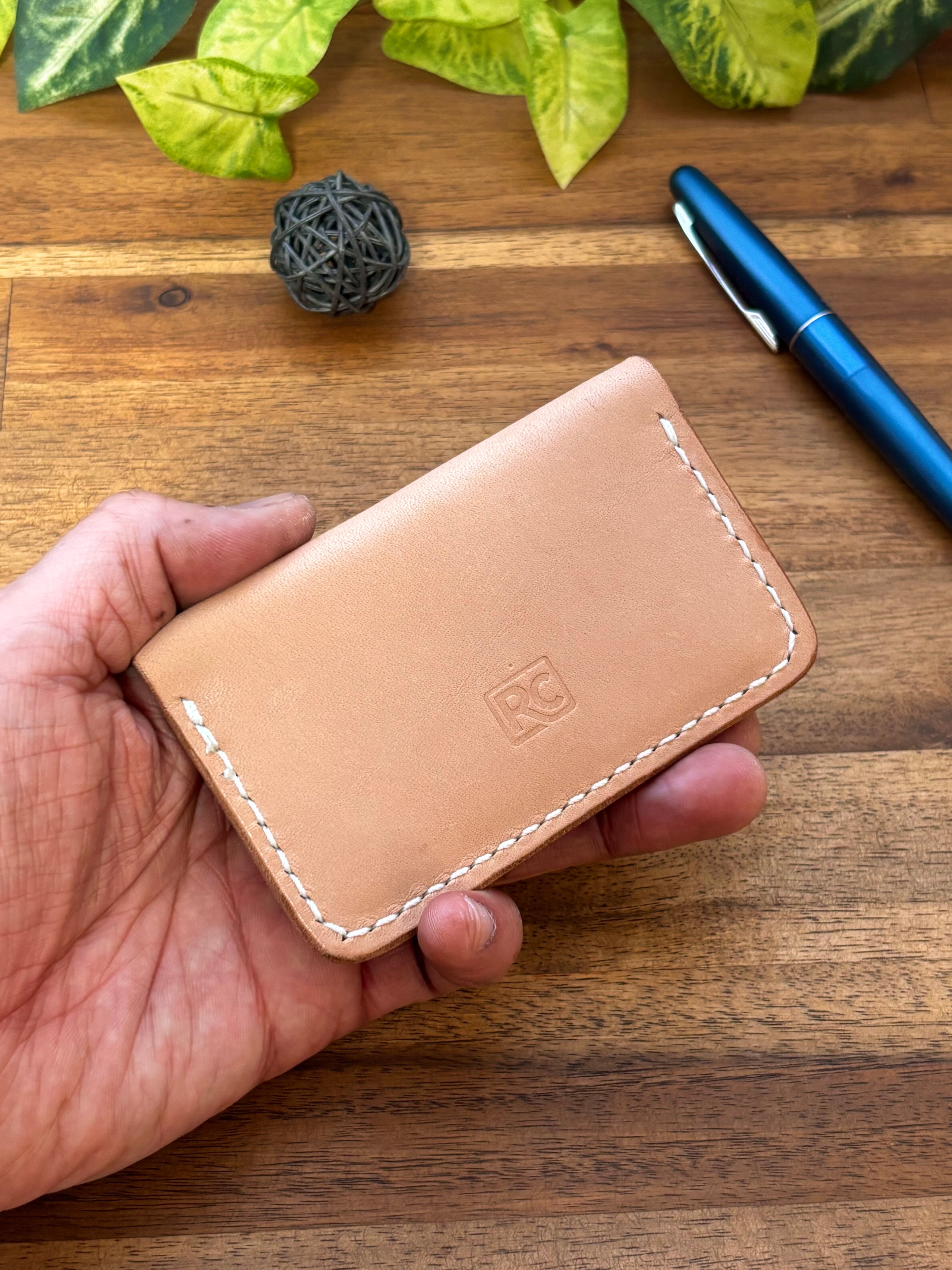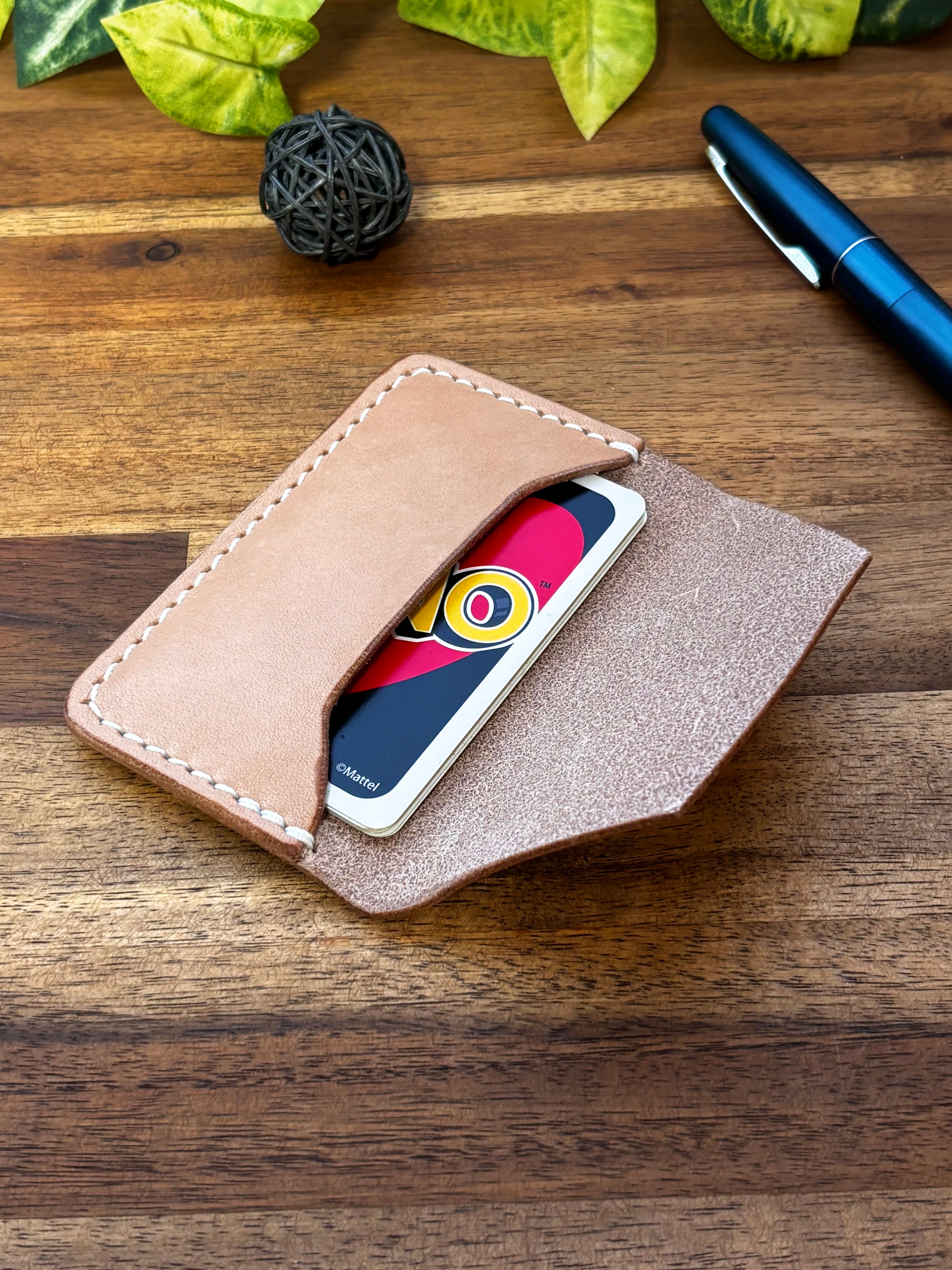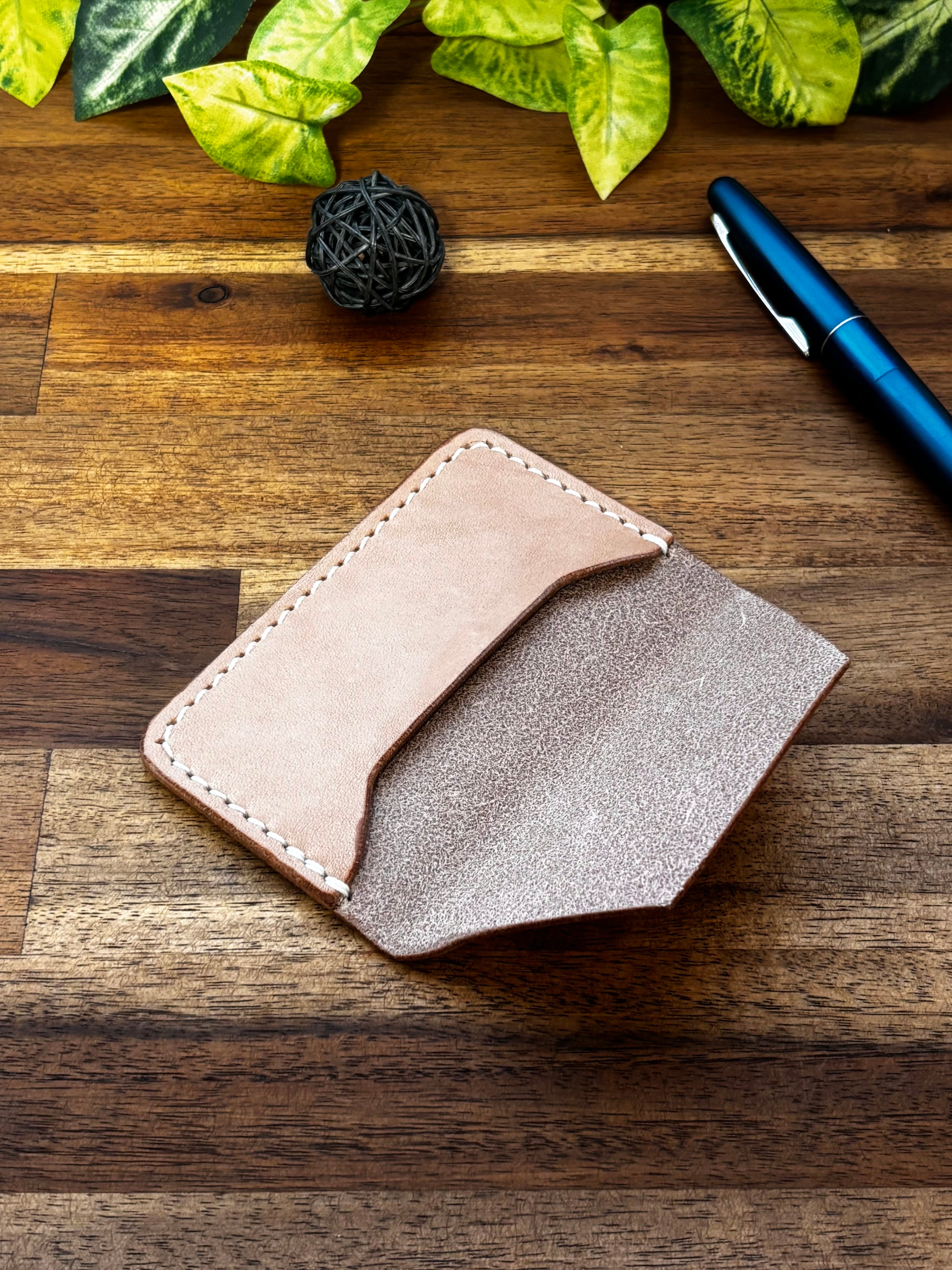 厚めの革を貼り付けたのみのカードケースです。
