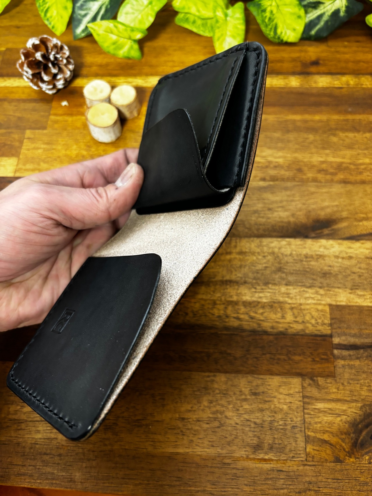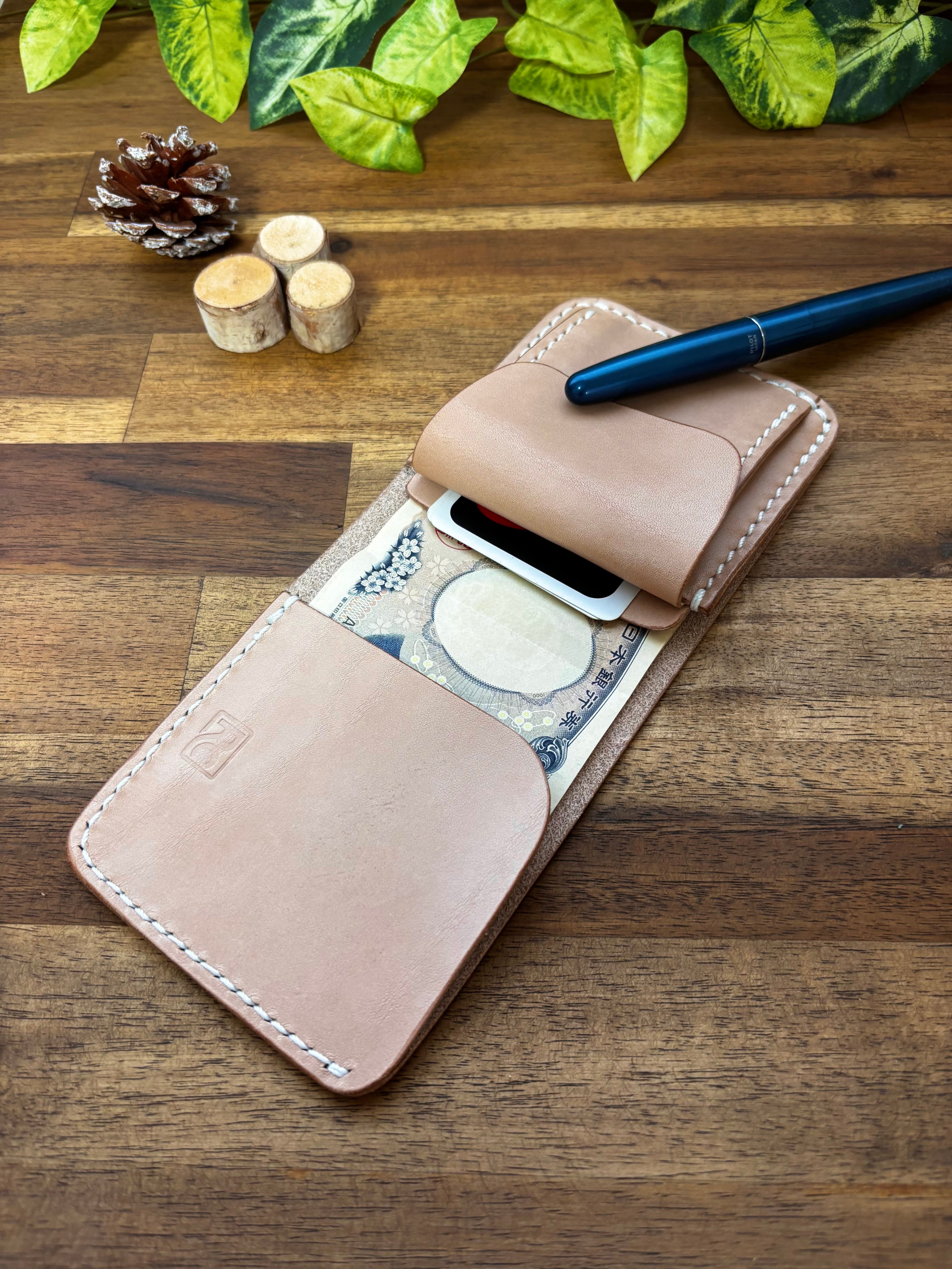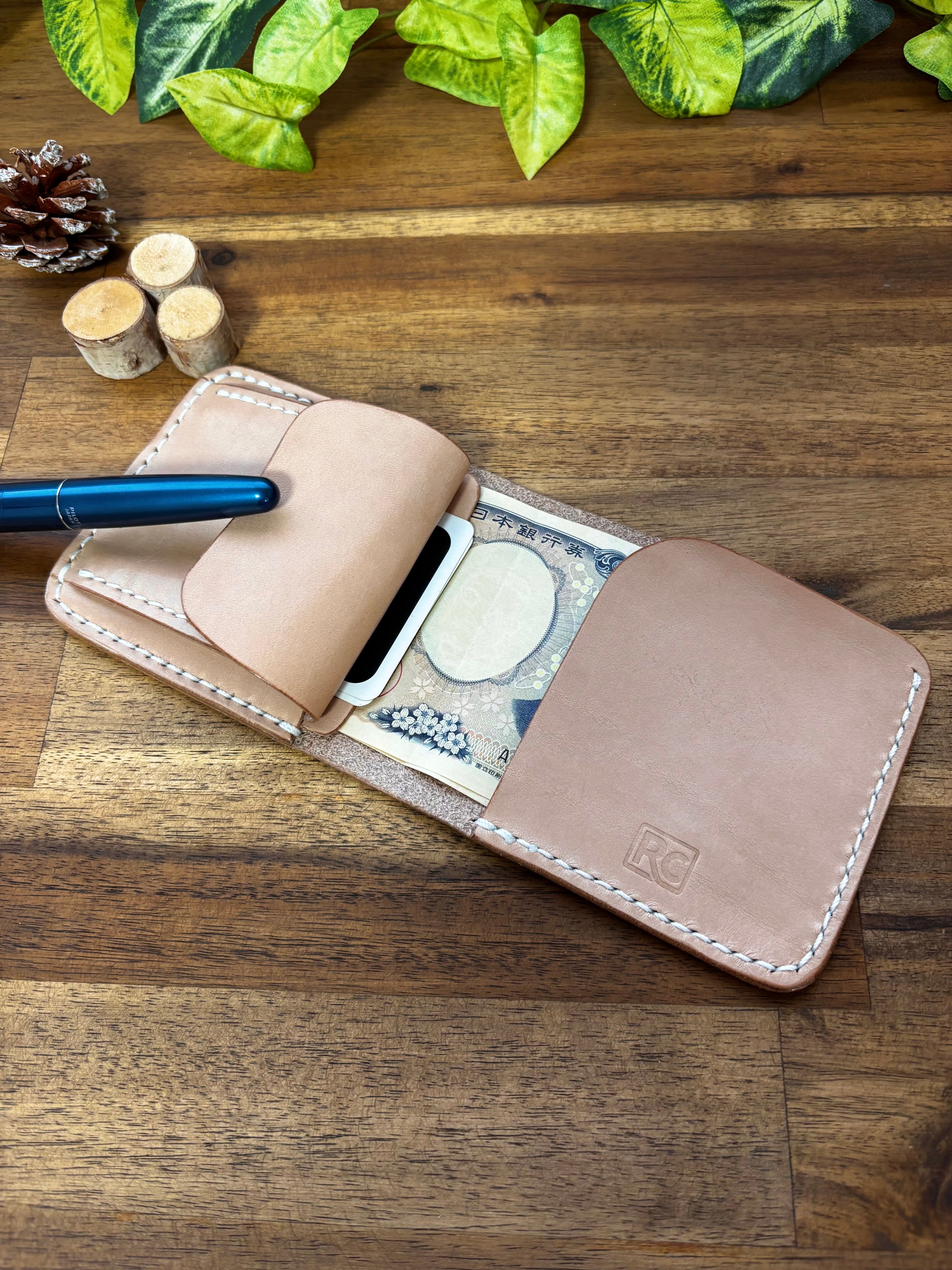 いわゆる二つ折りの財布に近いですが、限りなくシンプルに設計し、