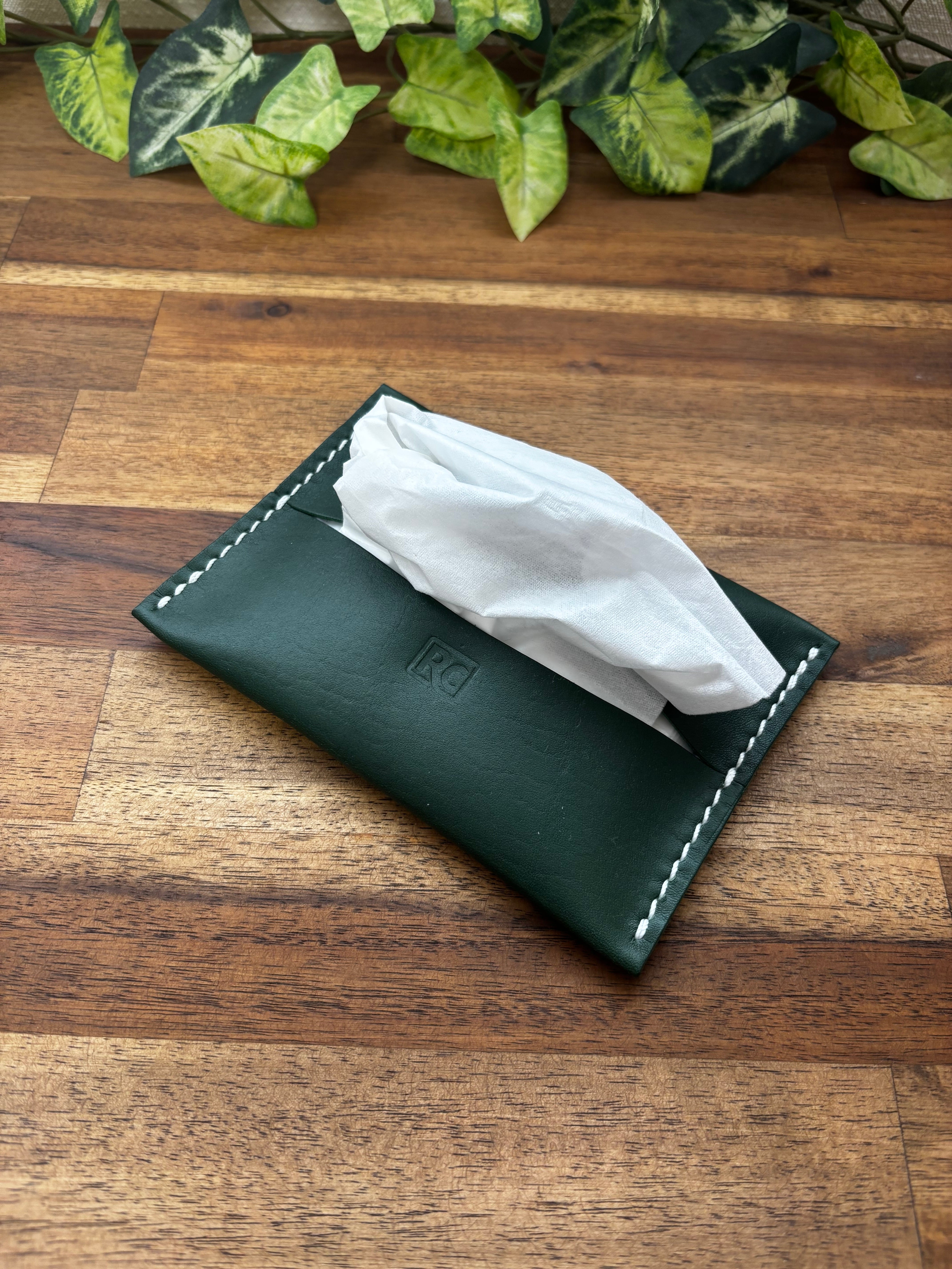 本革で仕立てた、シンプルなポケットティッシュケースです。