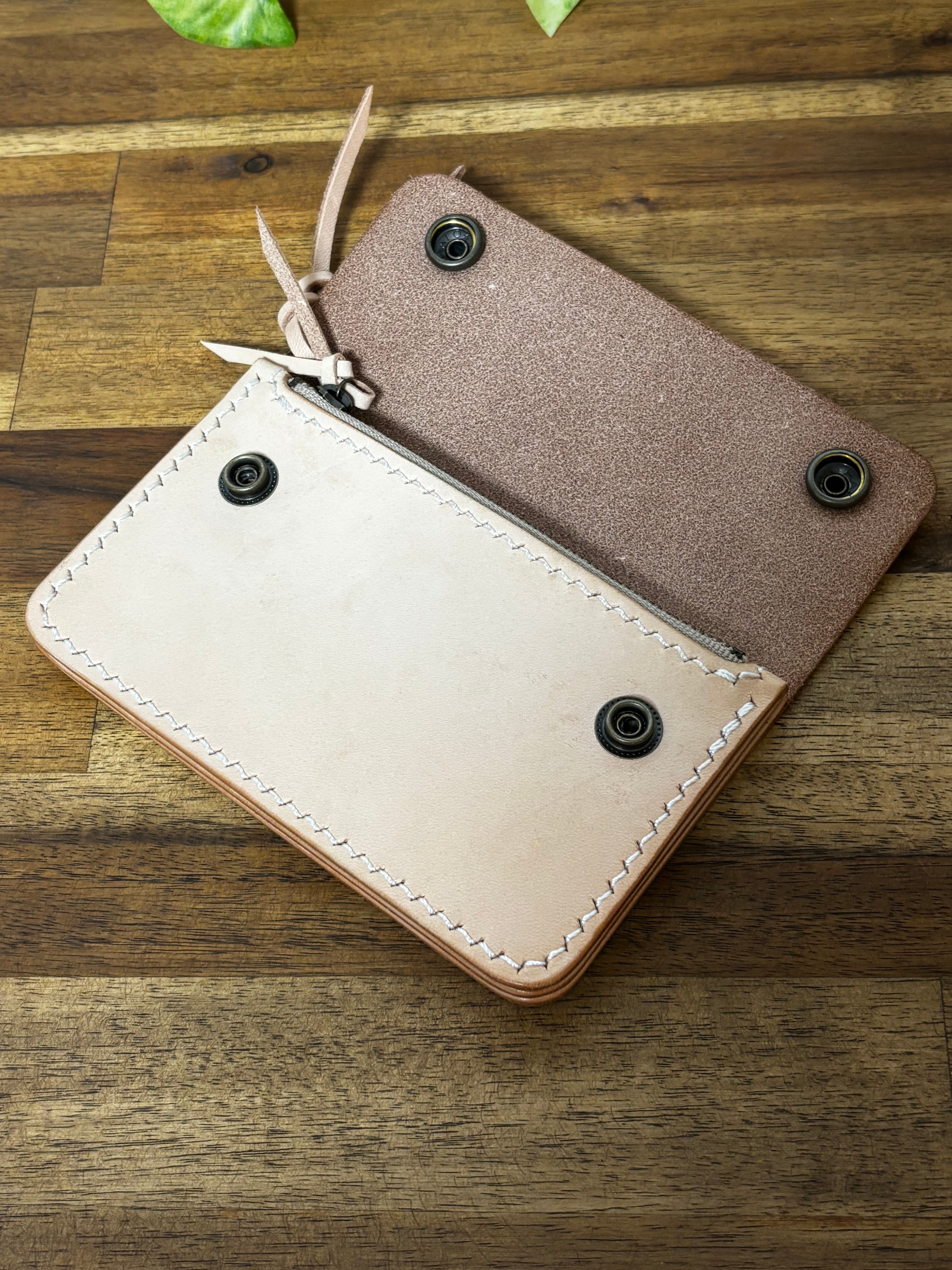 本革で作ったトラッカーウォレットのミドルサイズです。