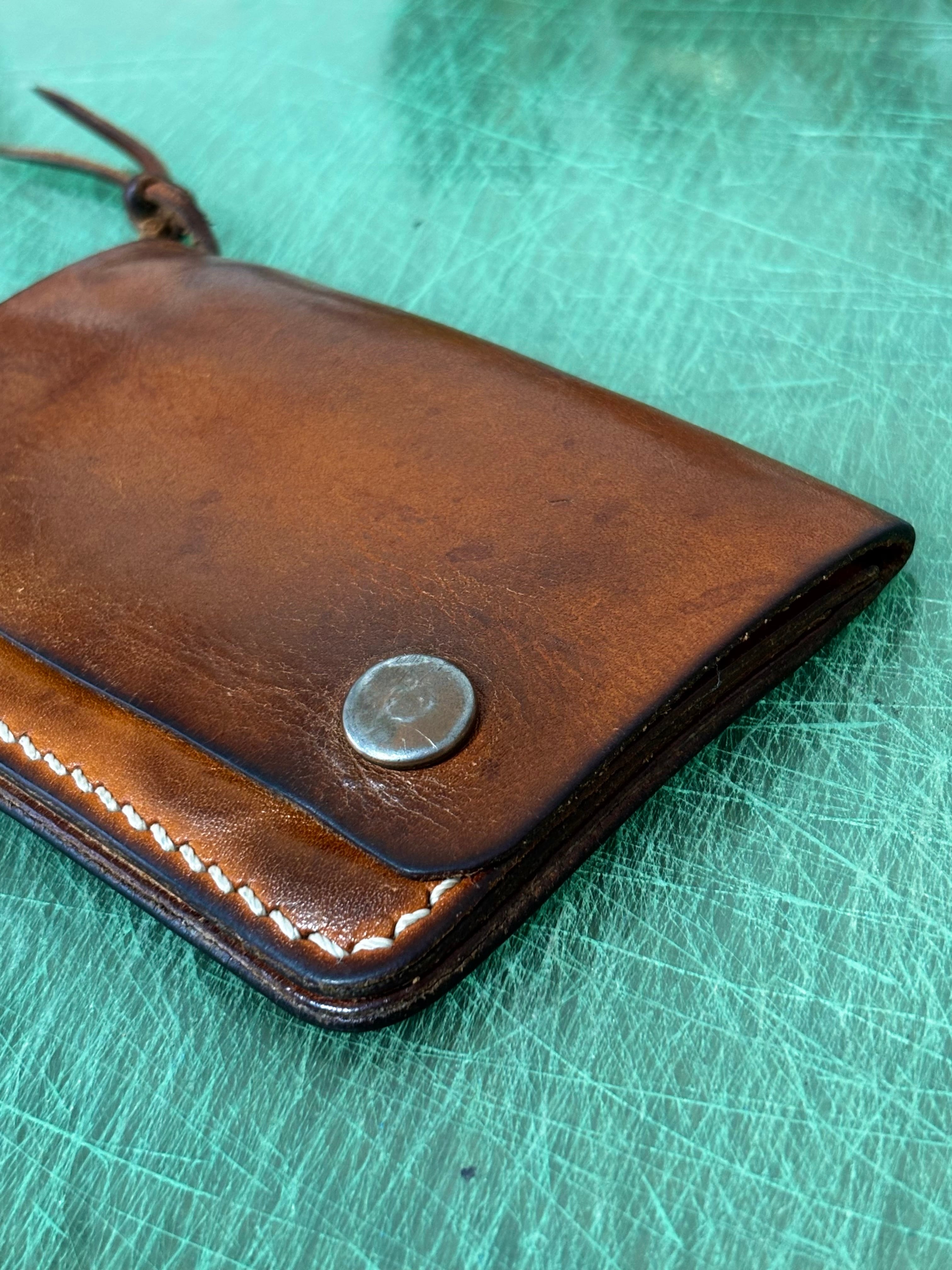 本革で作った、トラッカーウォレットのミドルサイズです。