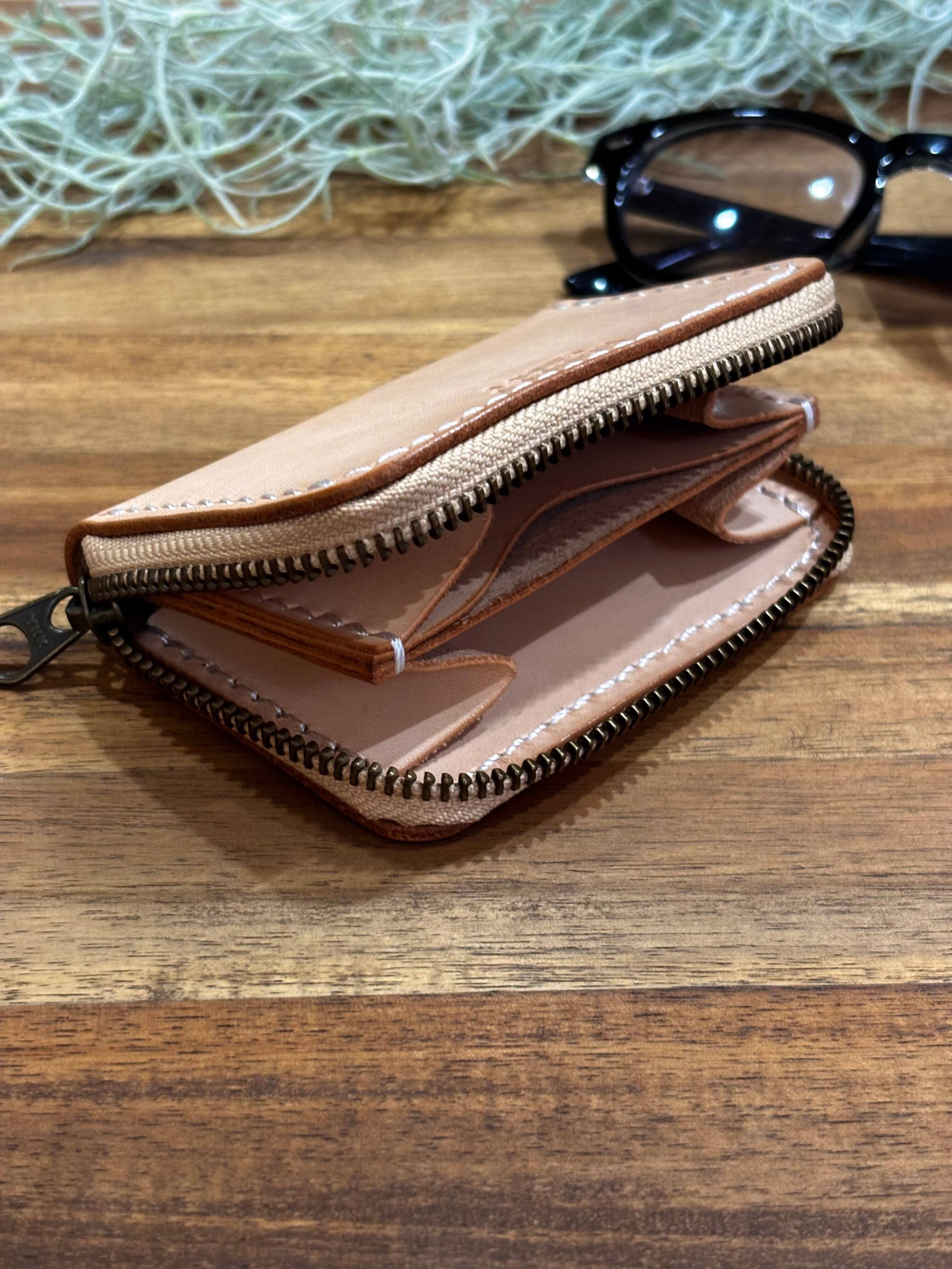 ヌメ革(本革)で作った、ミニラウンドファスナーです。